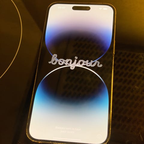Apple iPhone 14 Pro mobiltelefon med 128 GB lagringsutrymme. Telefonen är i färgen silver och levereras med laddkabel och skal. Det finns Inte en enda repa på telefonen. Batterihälsa 79%