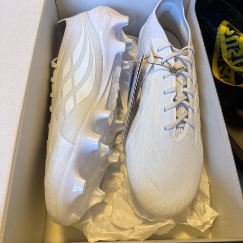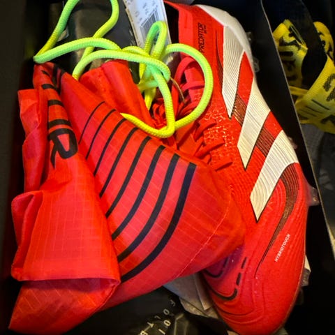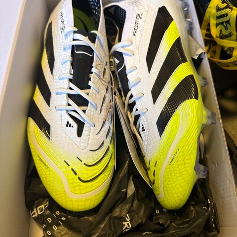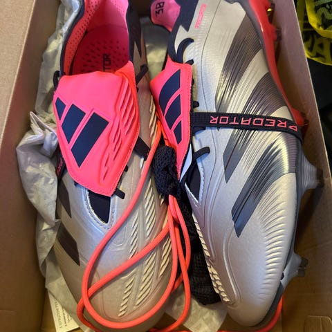 Adidas Predator Elite FG fotbollsskor i storlek 44 Skorna är röda och vita och designade för fotboll med fasta dobbar för gräsunderlag. Modellen är Predator Elite FG.
