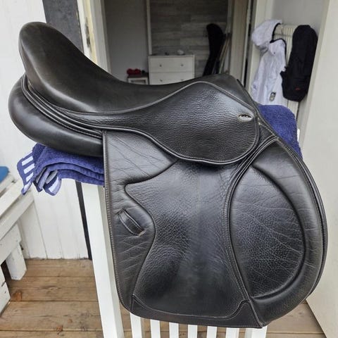 Santa Cruz Celine jumping saddle 16.5” with wide tree, in good used condition.