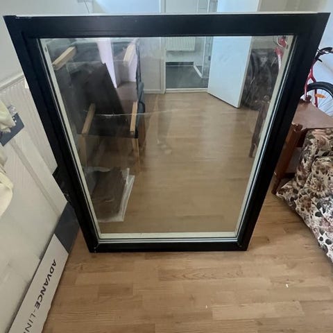 Totalt fem fönster. Fönsterna är från 2019, fint skick men vissa har hål i aluprofil efter gammal plåtsmyg
