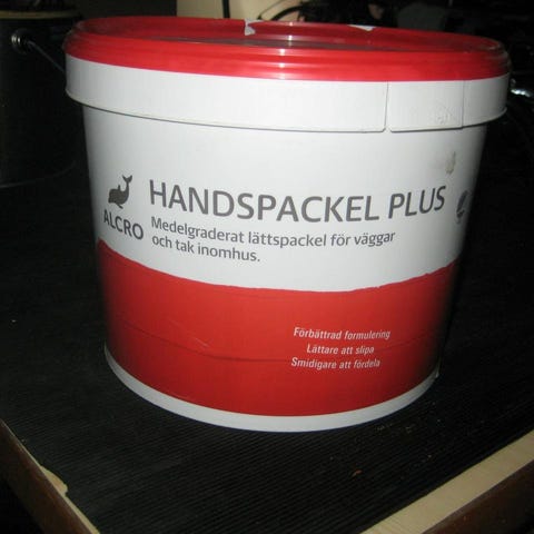 Missbedömde helt åtgång och har väldigt mycket spackel över. Beckers finspackel 10 liter, 4/5 kvar. Bostik lätt handspackel 10 liter, nästan halva kvar.