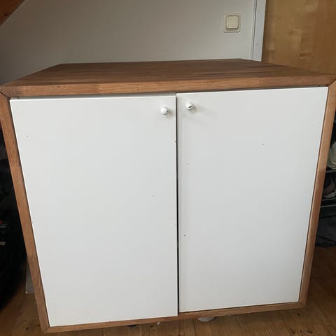 Med skjutdörrar & 2 lådor samt exponerings hylla. Fint skick. Pris 750kr eller högst bjudande.