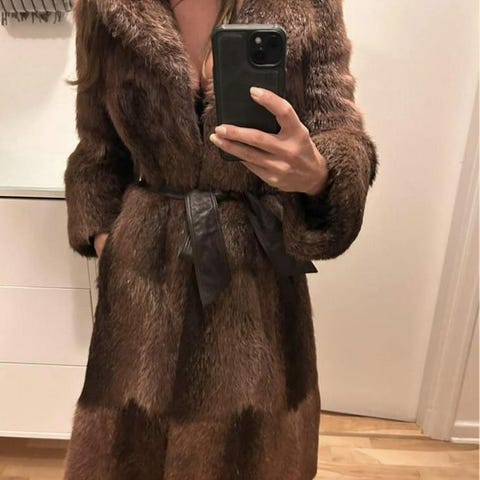 Klassisk hellång vintage pälsjacka i äkta räv, tillverkad av Björkmans Päls, Uppsala. Tidlös modell med bred krage och tät, vacker päls i naturliga brun/grå nyanser. Står ingen storlek men uppskattar att den borde passa XS-S.