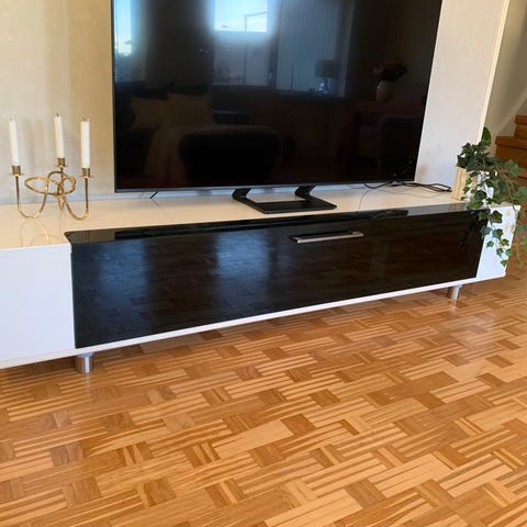 Stilren och minimalistisk IKEA TV-bänk i tidlös design. Passar perfekt i ett modernt hem och ger ett rent, elegant intryck.