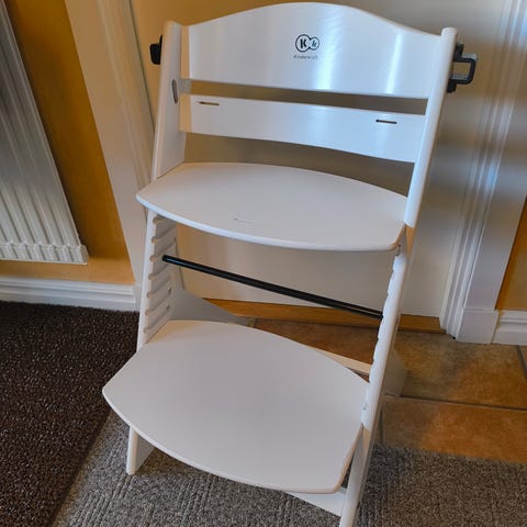 Den ena i plast kan regleras till fullt liggande och bordet kan tas av. Den i trä går att lägga ner så det blir stol + bord 300kr styck finns och hämtas i Storfors