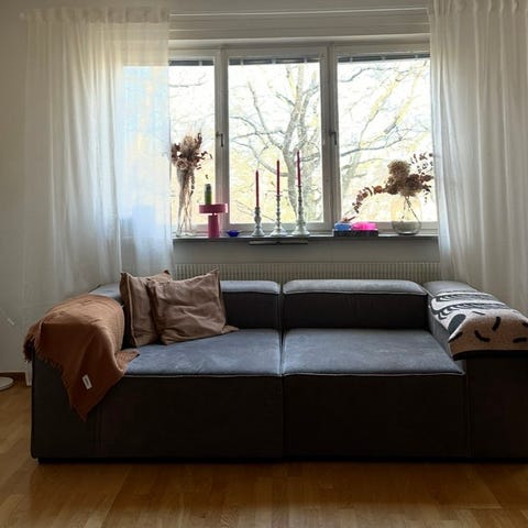 Säljer en stor och superbekväm modulsoffa i ljusgrå/greige (gråbeige).