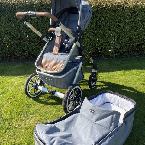 Allt som allt är den ren och fin! Modellen är klassisk med stora hjul (ej luft). Vi tycker den har fungerat fint både i stan och i skogen. Hjulen går att låsa eller ha i svängbart läge. Ligg och sittdel är vändbara. Fullt liggläge på sittdelen samt sele.