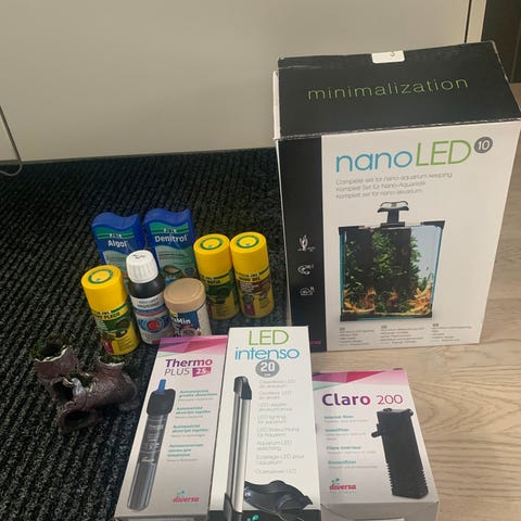 Säljer detta nanoakvarium på 10 L då det inte använts på år och dar. Akvariumet i sig är i gott skick bortsett från behov av en rengöring och vid köp ingår även tillhörande doppvärmare, belysning och filterpump (som jag dock inte kan garantera att de fungerar efter alla dessa års uppehåll). Har även en del tillhörande utrustning (håvar, bottematerial, etc) som jag kan slänga med vid intresse.