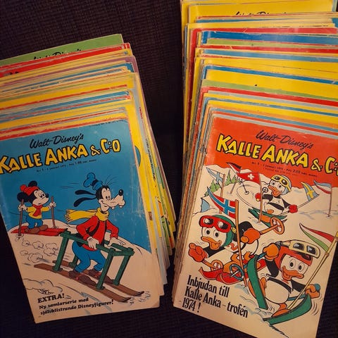 Äldre utgåvor av Kalle Anka. Synligt använd skick, men fortfarande helt ok, inga sidor saknas (enligt min son).