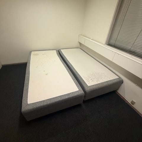 Använd som en extra madrass, men har legat i barnrum och är lite studsad på. Har några smutsfläckar, dock endast smuts.
