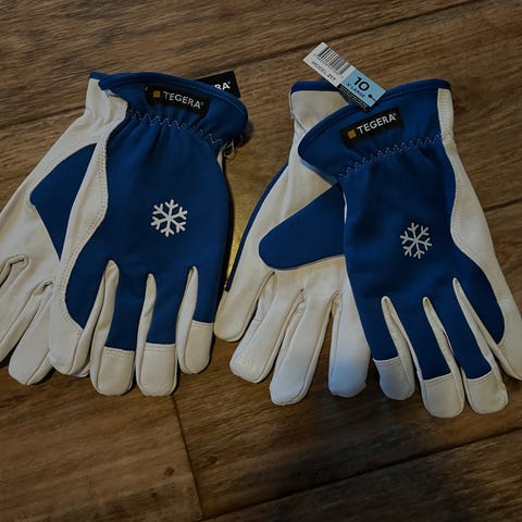 Getskinn på handflatan och fodrad med thinsulatefoder .