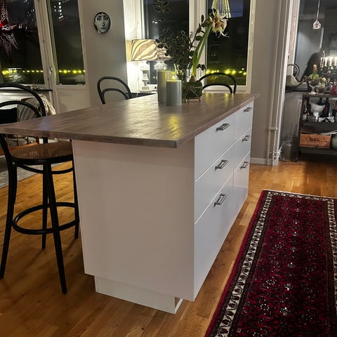 Köksö i rostfritt stål med tre hyllplan säljes. Höjd: 90 cm. Bredd: 60 cm. Längd: 140 cm. Avhämtas på Hisingen. Ta gärna med bärhjälp.