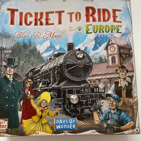 Days of Wonder Ticket to Ride Europe brädspel. Spelet innehåller ett europeiskt tågtema och är designat för flera spelare. Passar för familjespel och strategispel.