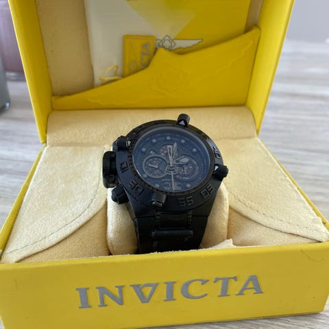 Invicta herrklocka i guld. Klockan har en guldfärgad metallboett och armband. Designen är anpassad för män.