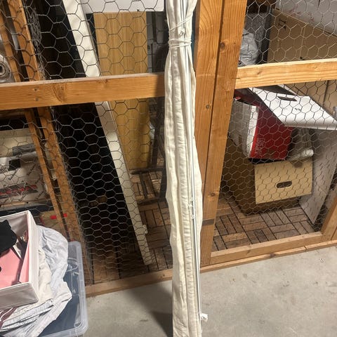Stång och snöre med hissmekanism till Hissgardin från Dekoria. Metalltyngd att fästa längst ner i gardintyget