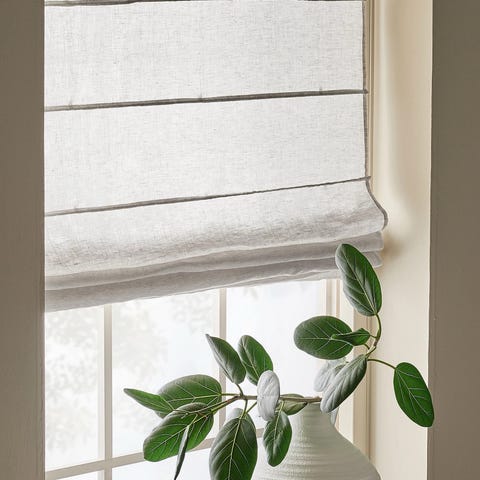 Se exempel på hur hissgardinen fästs och hur linan löper i öglor som är fastsydda i tyget.