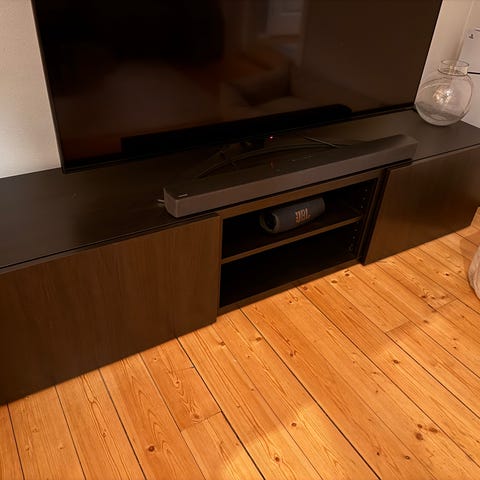 IKEA BENNO TV-bänk i björkfanér med glasdörrar