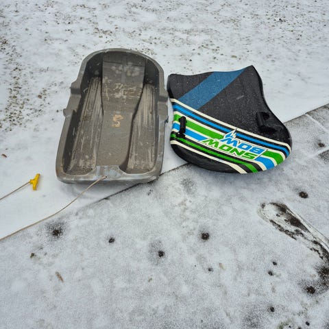 Blå pulka med dragsnöre 84 cm lång i bra skick