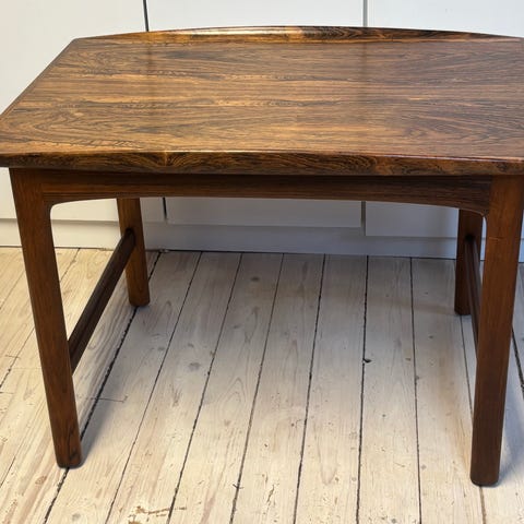 Stabilt och bra bord med skiva i Masurbjörk (fanér). Bra skick, men masurbjörken behöver