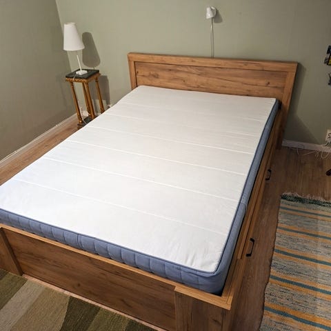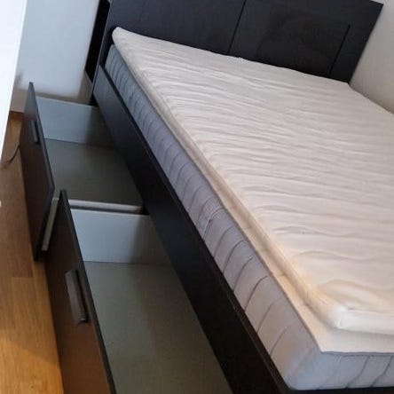 Fin och skön säng 140 cm. Mörkgrå. Komplett med gavel och bäddmadrass.