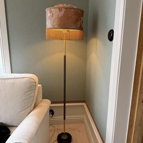 Se bilder för skick på lampfoten. Lote sliten nedtill.