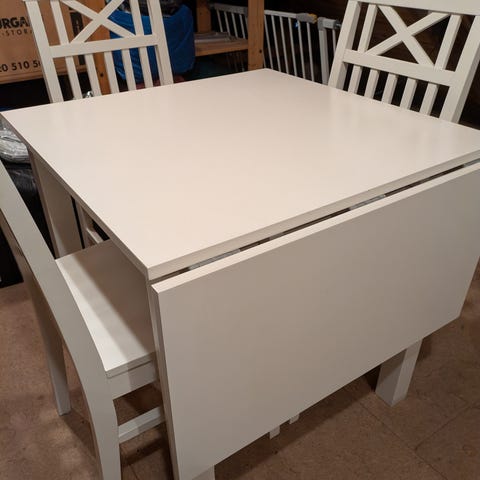 Ihopfällt är bordet 33 cm och tar nästan ingen plats.