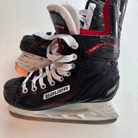 Ett par Bauer Comp skridskor i storlek 6sr och fit 2, har lite kosmetisk skada men absolut inget som påverkar strukturen, sköna och bra skridskor till ett bra pris, kommer ej slippade men dem kan behöva de