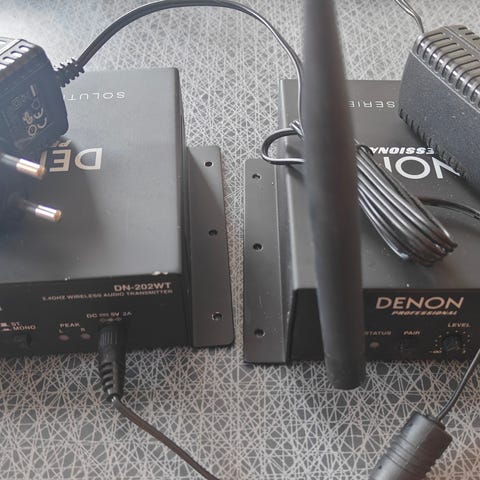 3 st Sennheiser trådlöst mikrofonset inklusive handhållna mikrofoner, mottagare, antenner och tillbehör. Systemet är avsett för trådlös ljudöverföring och innehåller 3 enheter för samtidig användning. Mikrofonerna är svarta och utrustade med standardkontakter för anslutning. Mikrofonerna drivs med 9 volts batteri. Levereras med monteringsklämmor, korta kablar till mixer eller förstärkare, korta antenner för ännu bättre räckvidd och förvaringslåda. Trots att de inte använts på flera år är funktionen kontrollerad idag och är normal. Priset vid inköp var cirka 150-175€ per styck. 900 kr gäller för all tre!