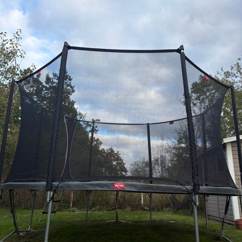 Ta med dig 13mm nyckel medspärr och en större kombi så plockar du isär fjolårets studsmatta till dina barn. Mina har tröttnat efter en säsong. Den är köpt på Rusta inför förra säsongen. Hoppyta är 3m och nätskyddet är 1,8m hög. Ta med bär hjälp