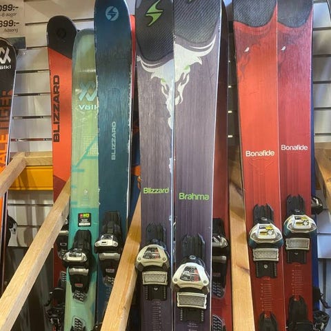 Skidorna är i bra använt skick med normalt kosmetiskt slitage, inga kända skador. Bindningarna fungerar som de ska och kan justeras efter pjäxstorlek.