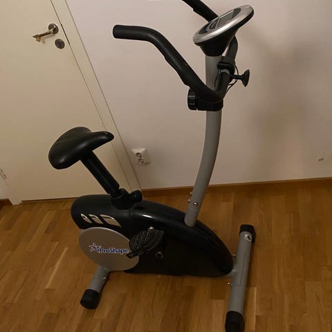 Motionscykel i mycket gott skick. Digital display för tid, distans, hastighet, puls och kaloriförbrukning. Justerbar motståndsnivå med ratt från 1 till 8.
