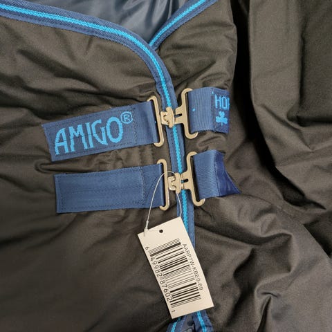 Amigo Hero 6 plus Turnout Heavy 350 gr med hals stl. 145. mörkblått. Fint skick. Sparsamt använt. Köparen står för frakten. Pris 1500 kr kan diskuteras.