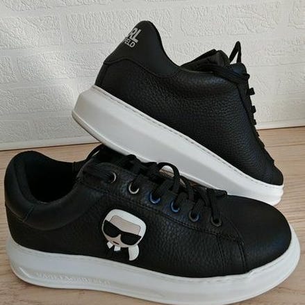 KARL LAGERFELD Sneakers i storlek 37, vita. Skorna är tillverkade i material som framgår av bilderna och har snörning framtill. Designen är enkel med detalj i svart och metall på baksidan av skon. I fint skick