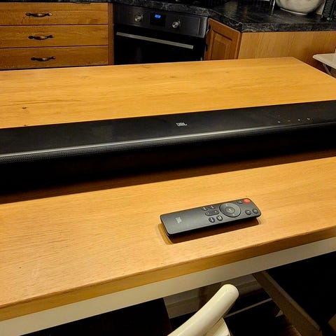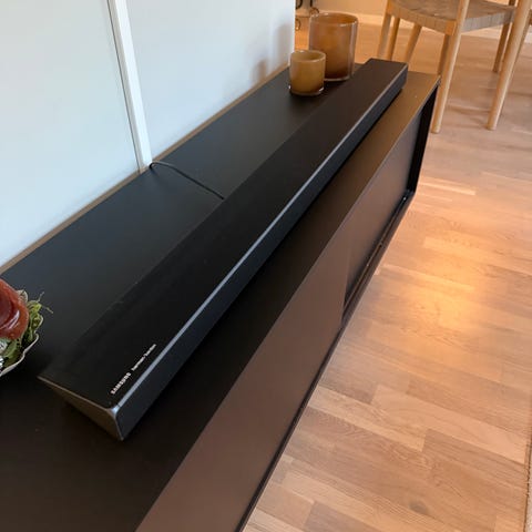 Harman Kardon subwoofer och ljudlimpa. Produkten inkluderar subwoofer med tillhörande strömadapter och fjärrkontroll. Svart färg och design anpassad för ljudförstärkning i hemmamiljö.