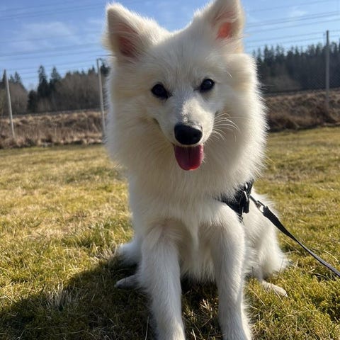 Fina Vivi är en ljuvlig liten tik som fyller 2 år i april. Hon är en blandning mellan tysk spets & japansk spets. Cirka 33 cm hög och väger under 5 kg.