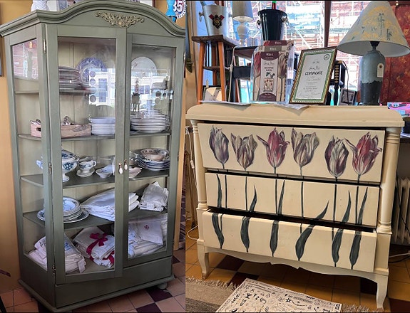 Två olika vitrinskåp i olika tidsepoker