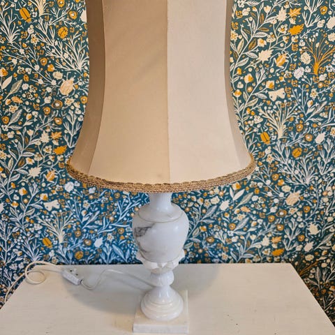 2 bordslampor med mörkgrå glaskupa och marmorfot