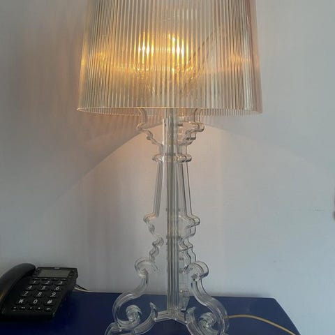 Kartell lampa formgiven av Philippe Starck. Lampan har en modern design och är lämpad för inomhusbruk. Lampan har dimmer så det blir riktigt mysigt ljus med den. Har några år på nacken och har lite små repor men är u fint skick. Nypris ca 4.500:-