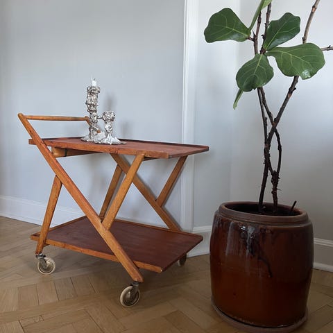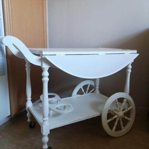 Drinkvagn i krom med två glasskivor i fint skick, finns att hämta i Haninge