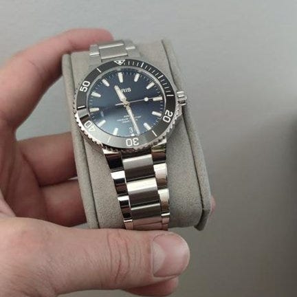 Säljer en Oris Aquis Date med grön urtavla.