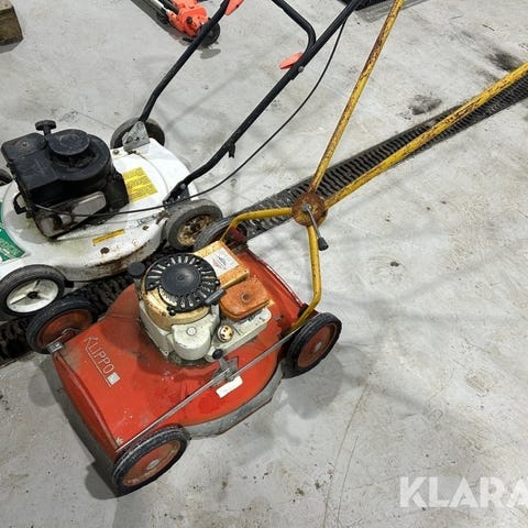 Två gräsklippare med kraftfulla motorer som kan användas som reservdelar eller om man fixar de mindre problemen de har, kan man ha två mycket bra gräsklippare Självgående.