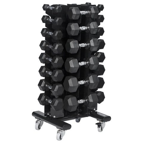 Hantlarna levereras parvis och ingår med två tillhörande ställ som håller vikterna på plats vid justering och förvaring. Konstruktionen är utformad för att ta upp begränsat med utrymme och kan förvaras exempelvis under en säng eller längs en vägg.
