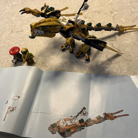 Säljer denna vita draken från Lego NINJAGO. En liten bit missar och det är en hat från vingen men inte my let mer än så, även sido byggnaden saknas. Men alla institutioner med följer.