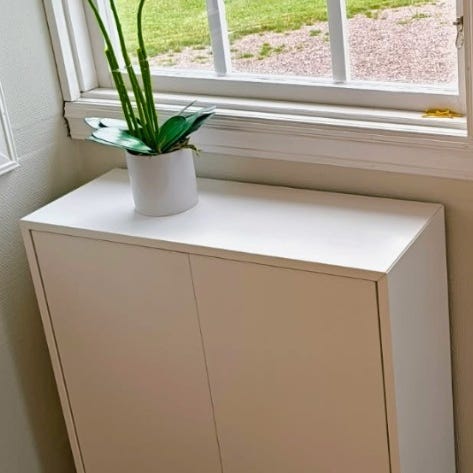 Två fina EKET-skåp i nyskick från IKEA som har ben och belysning i. Lamporna går att ladda upp.
