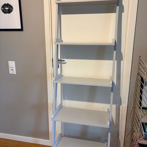 Vit bokhylla i enkel och stilren design. 200cm lång och hyllplanen är 29*29cm.