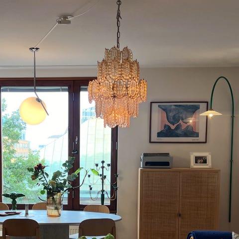 Säljer lampan jag aldrig skulle sälja, men i och med flytt till hus (och lägre takhöjd) så har jag tyvärr inte längre någon plats för den. Detta är en otroligt vacker lampa som gör ett helt rum. Det är en Murano Chandelier och är enligt uppgift från 1970 och designad av Paulo Venini.