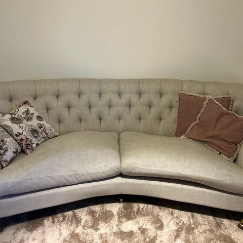 Mycket fin och bekväm kvalitetssoffa från Englesson "Howard slim" , inköpt för ca 2 år sen, ljusbeige tyg, (Barbarossa Marzipan) nyskick. Inga fläckar . Djur- och rökfritt hem. https://www.englesson.se/collections/howard-slim