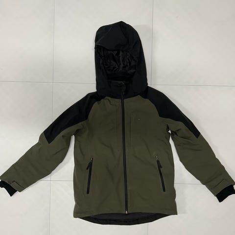 Jackan är sparsamt använd och i bra skick, det enda "slitaget" som syns på den är reflextrycket bakpå som börjat släppa. Se bild.