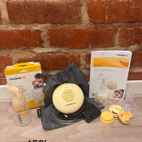 Medela Swing bröstpump för att underlätta amning. Produkten är designad för att effektivt och bekvämt pumpa bröstmjölk.