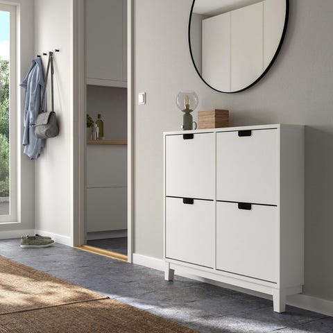 Vitt skoskåp ”Ställ” från IKEA. Tre fack. Det finns en liten repa (bild) annars fint skick. Har ju varit skor i så inte kritvitt på insidan såklart.